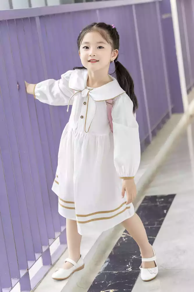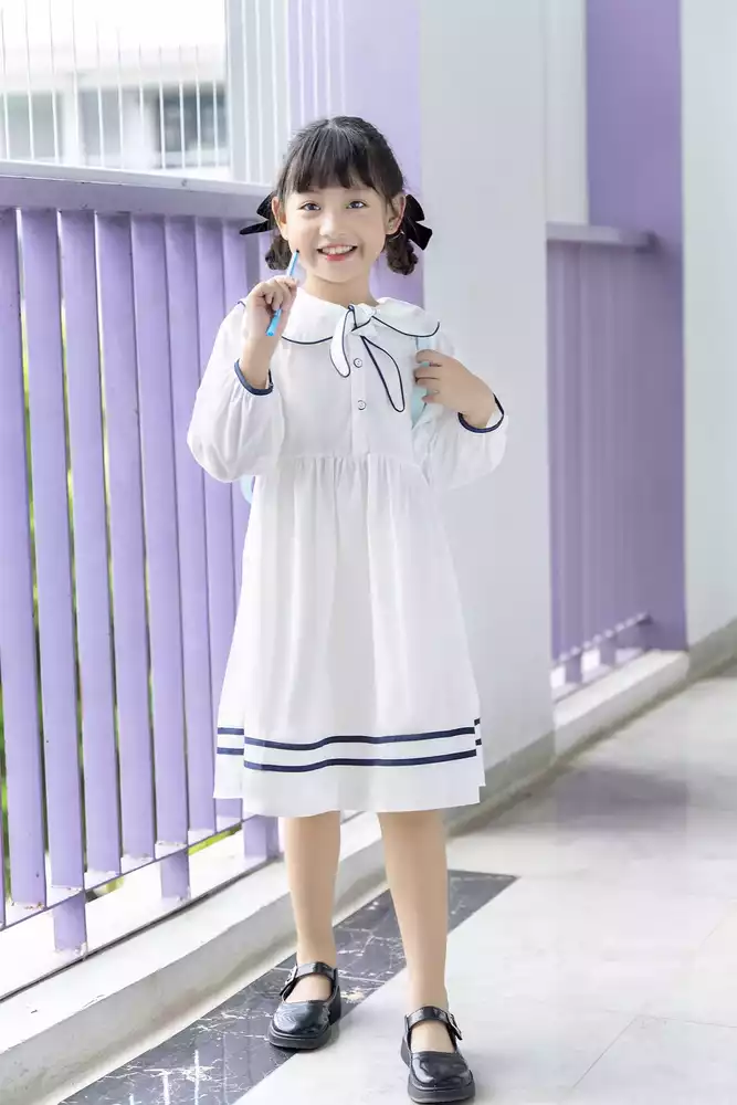[ Outfit duyên dáng ] Váy đi học cổ nơ phối viền